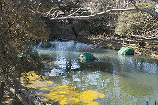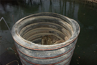 写真右下は80cmのゴム輪で保護された橋脚(古木)。