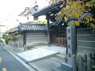 お寺の石碑に野田城後だと記されていましたが、少し離れた